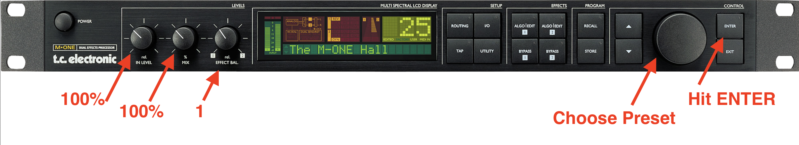 • Make sure the reverb unit has the following settings. Feel free to play around and choose any effect preset (however, reverbs and delays will work best here).
