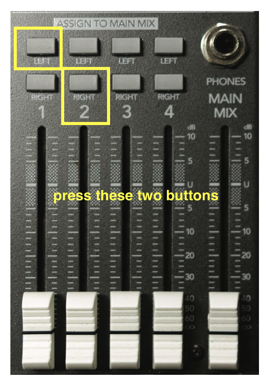 (If unsure, bring all the faders down; as you do the various steps, bring them back up slowly to avoid feedback)
